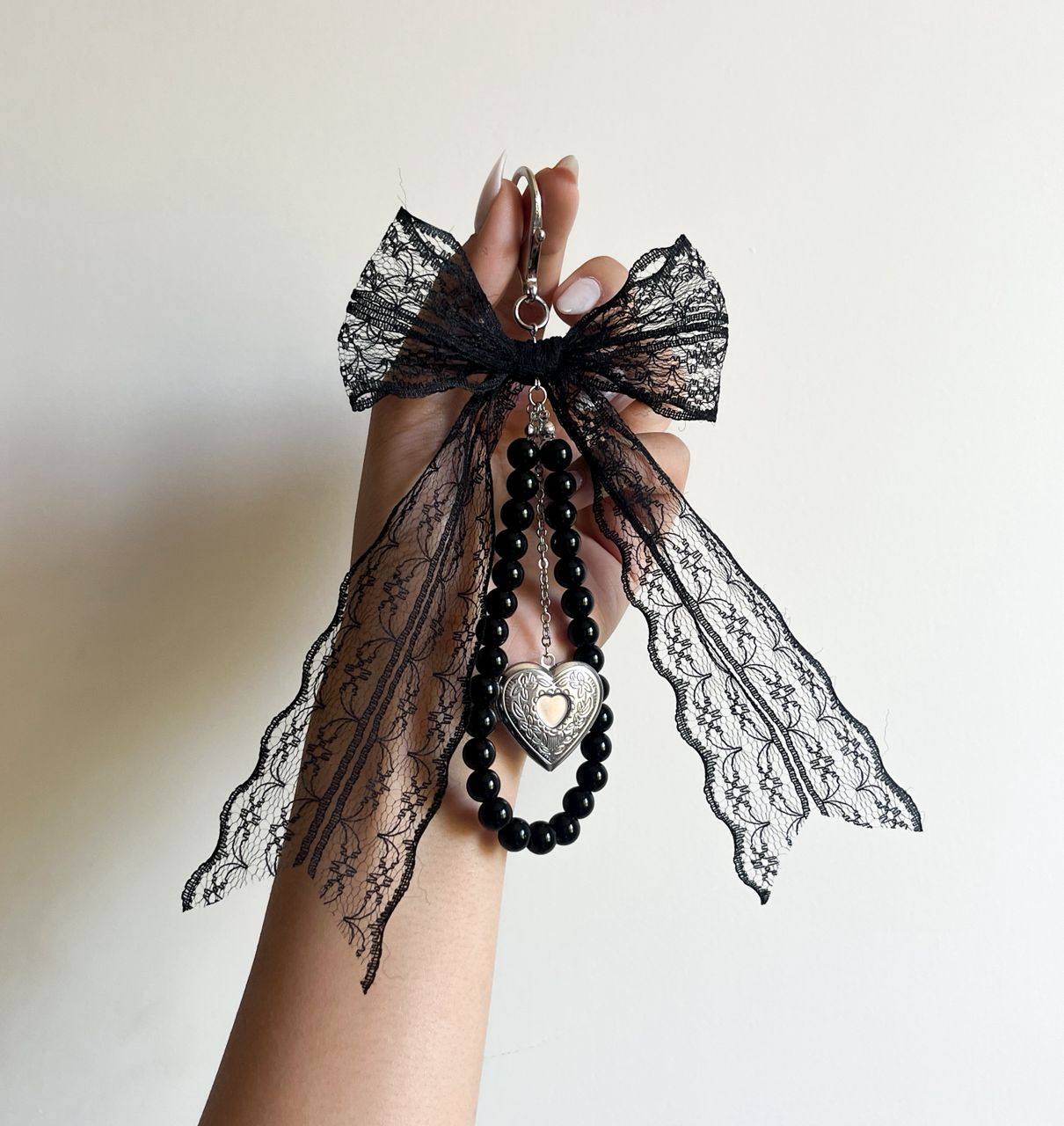 آویز کیف لاکت دار | قلب استیل با قابلیت قرار دادن عکس – رنگ مشکی و سفید